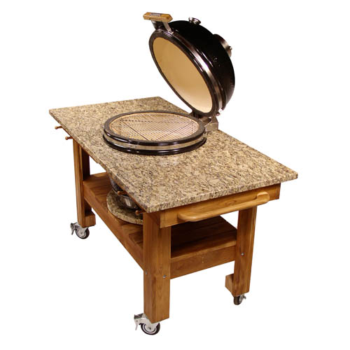Grill On Your Saffire Grill In Style With A Teak Cart with Amber Cloudburst Granite Top and Riser.NOTE: Saffire Grill & Smoker Sold Separately